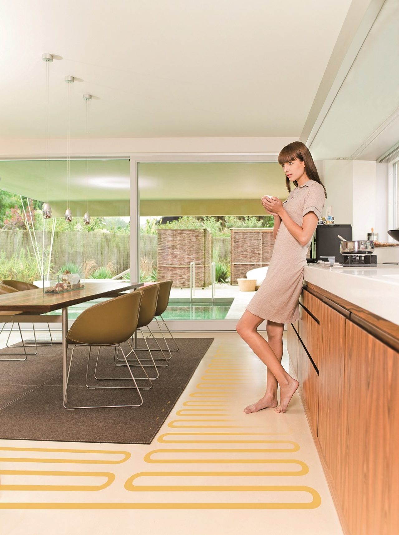 Tento druh podlahového kúrenia je ideálnym vykurovacím systémom najmä pre nízkoenergetické a pasívne domy. Je možné ho použiť takmer nezávisle od zvoleného typu podlahových krytín.