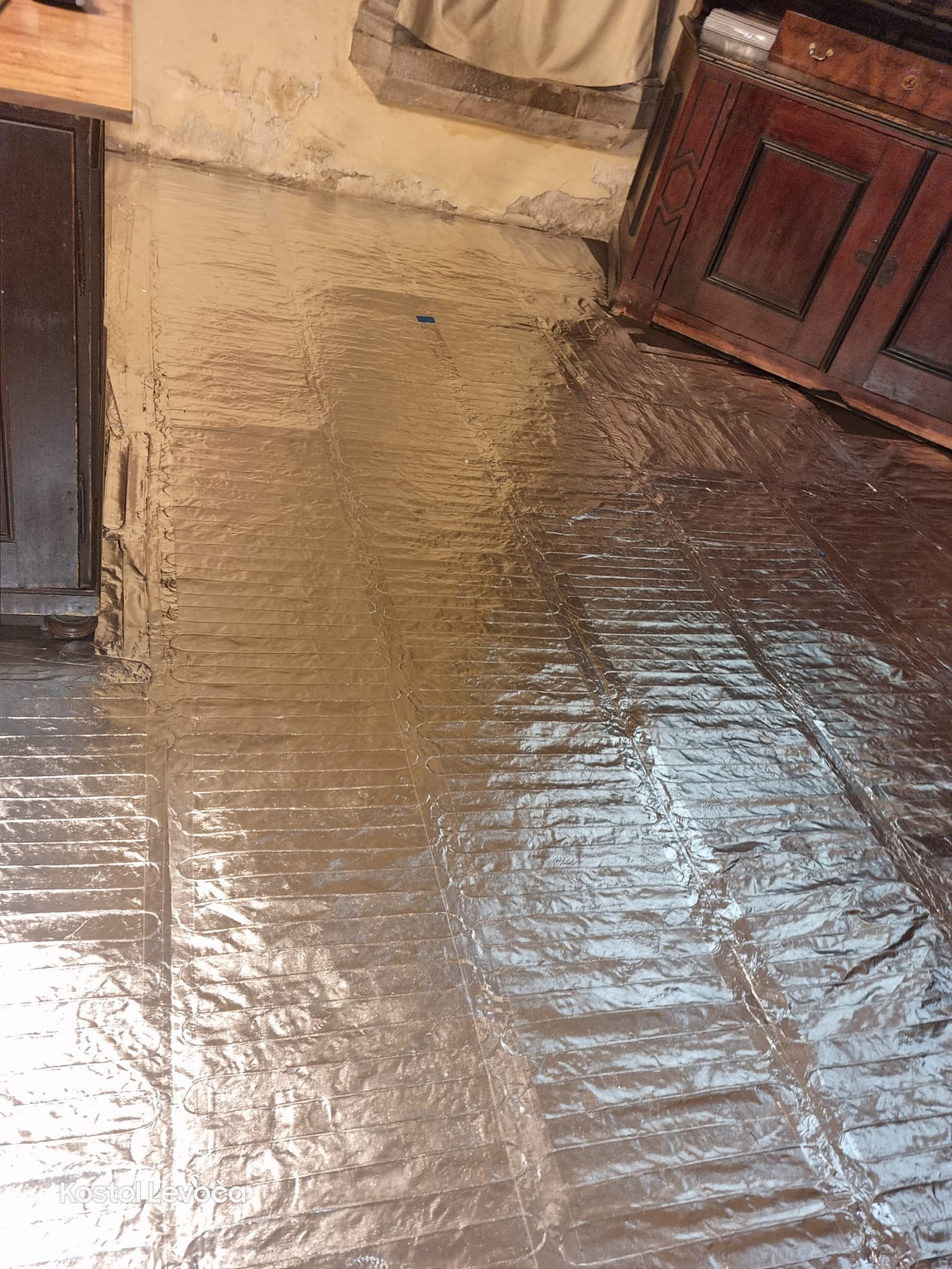 Sakristia baziliky bola vybavená technológiou podlahového kúrenia "Vykurovacia hliníková fólia 152-LMHA5". Montáž vykonala naša spoločnosť dňa 8. 11. 2023. Realizácia trvala iba 1 deň. Na reguláciu bol použitý 1 termostat pTOUCH WHITE DRY CONTACT WIFI-SMART LIFE. Tento typ kúrenia bol schválený pamiatkármi, pretože vzhľadovo ani fungovaním neohrozuje pamiatku, akou je Bazilika sv. Jakuba v Levoči.