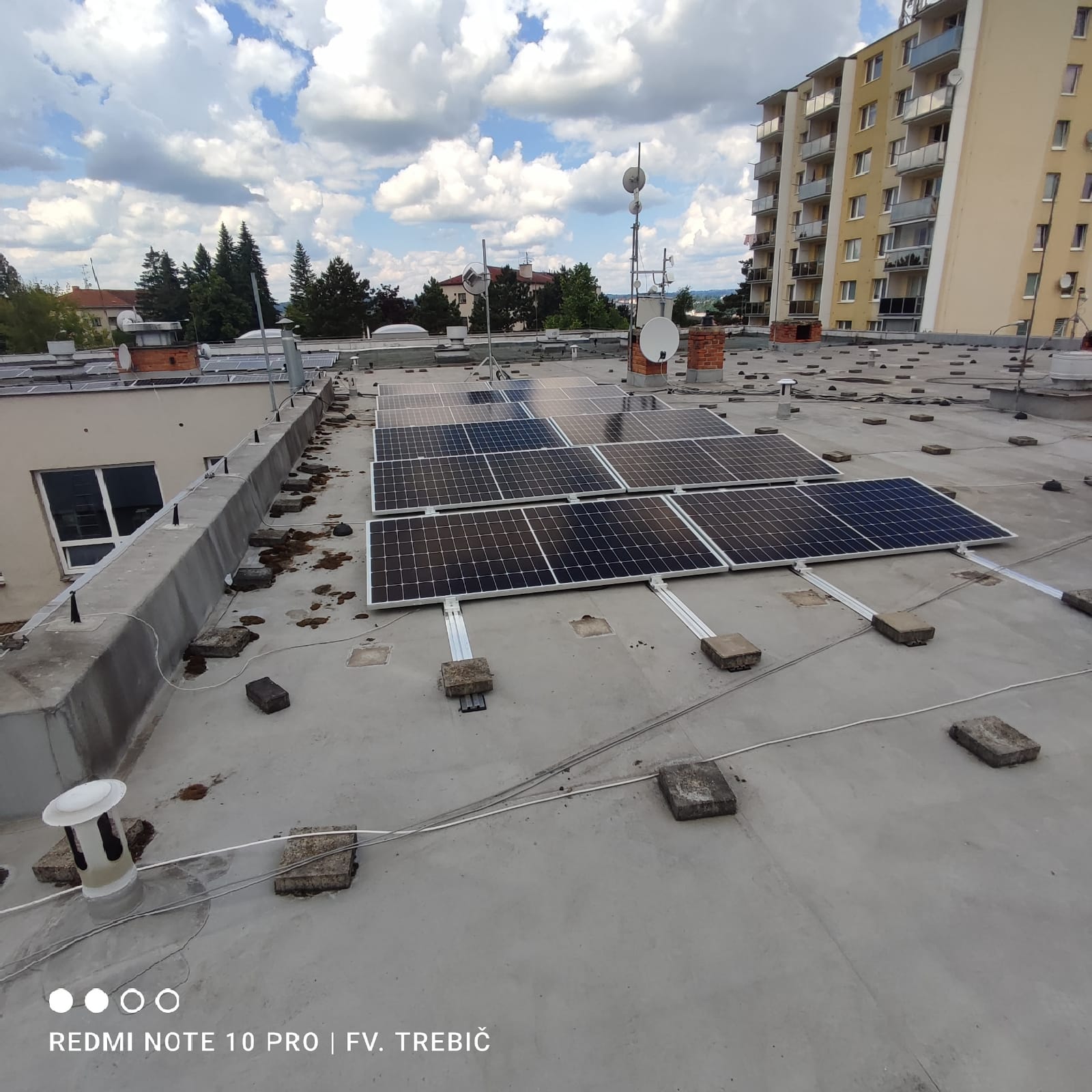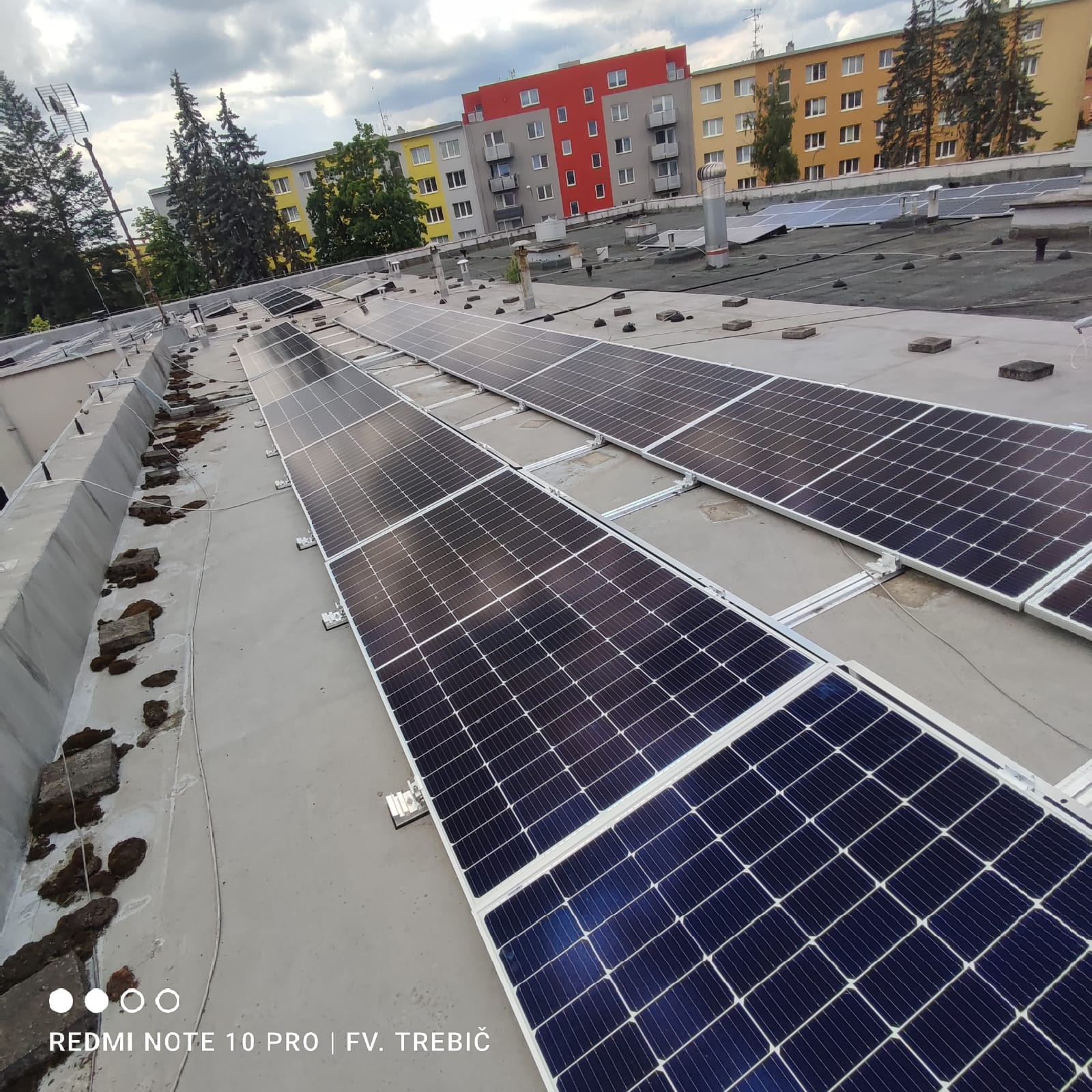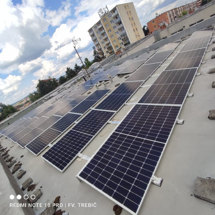 V dňoch 12.6. až 15.6.2023 boli na strechu objektu nainštalované 88 ks fotovoltických panelov. Všetky na rovnej steche s jednotným sklonom konštrukcie 10° a smerem natočenia 155°.