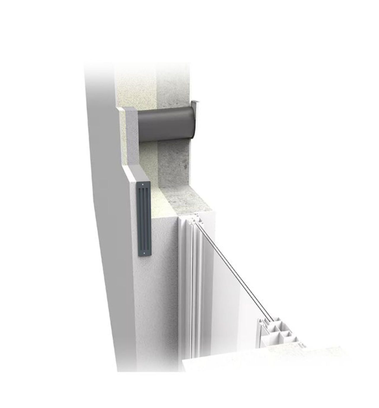 Ventilačná mriežka z nehrdzavejúcej ocele vo farbe antracitu (RAL 7016) pre vonkajšie ukončenie stavebného prvku getAir SmartFan L Plus. Kombinuje sa so všetkými rekuperačnými jednotkami getAir.