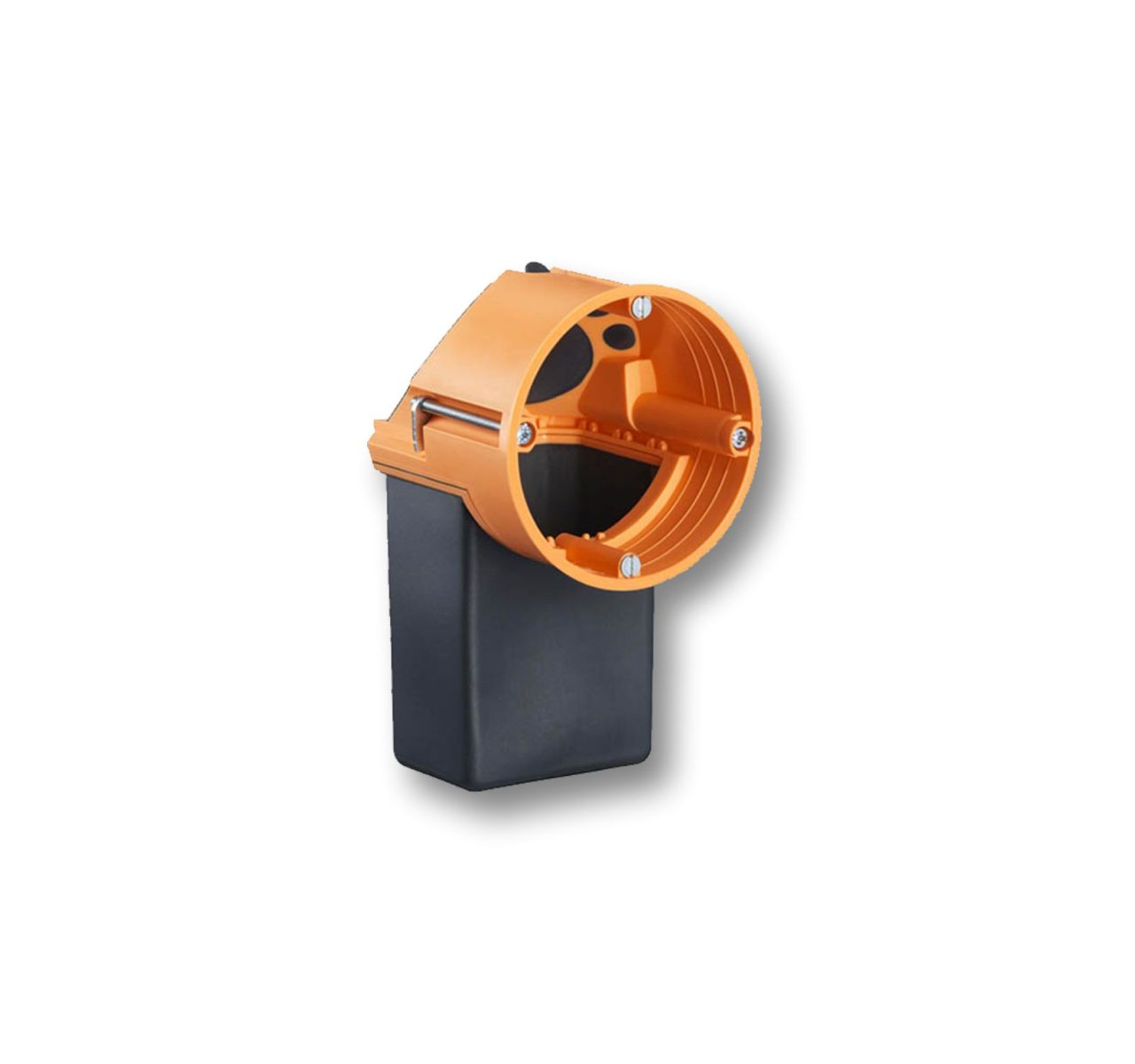 Elektrikárska podomietková krabica s flexibilným tunelovým pripojením, určená pre sádrokartónové (alebo iné duté) steny.