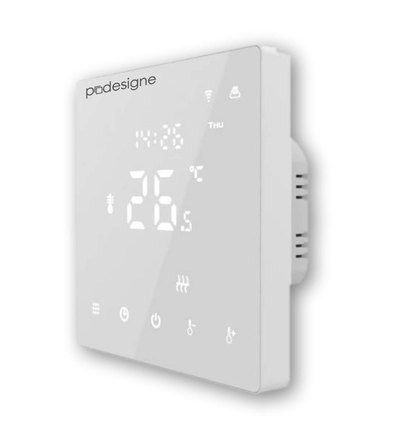 Termostat pre pevné zabudovanie po drôte, pre všetky druhy podlahového elektrického kúrenia, vhodné aj pre reguláciu infrapanelov a konvektorov – ovládateľný prostredníctvom WIFI.